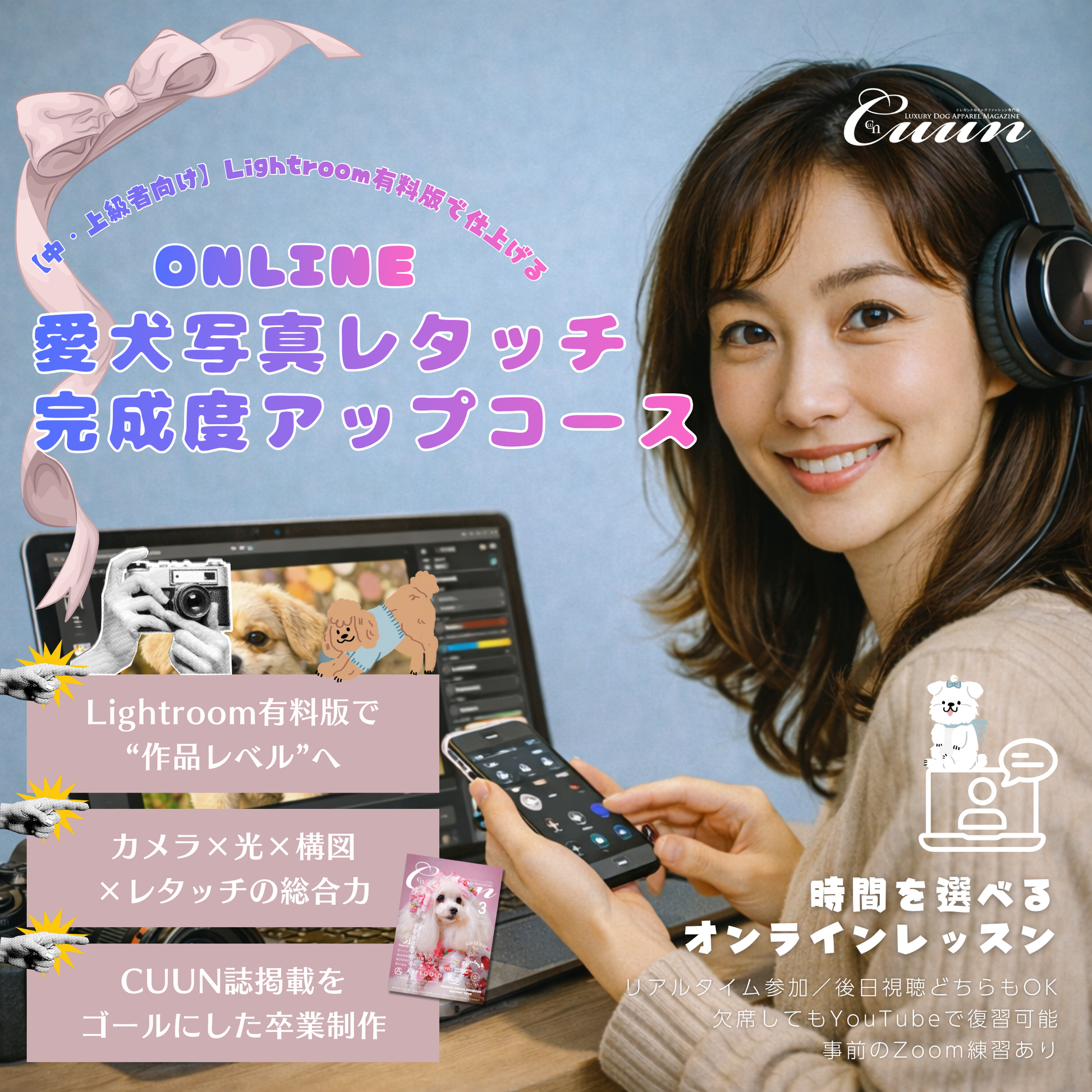 2月開講|【中・上級者向け】Lightroom有料版で仕上げる|愛犬写真レタッチ 完成度アップコース|CUUNオンラインフォトレッスン第8期生